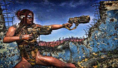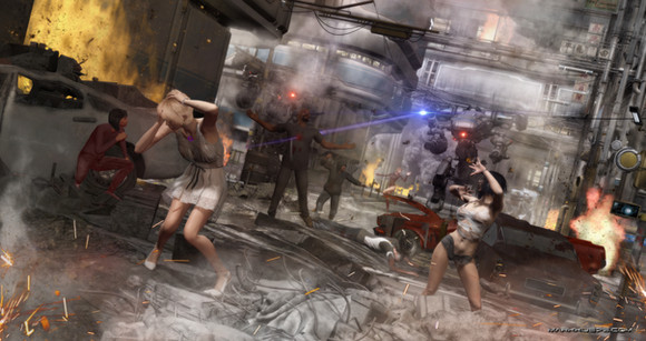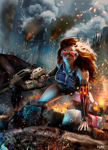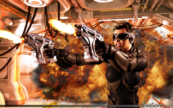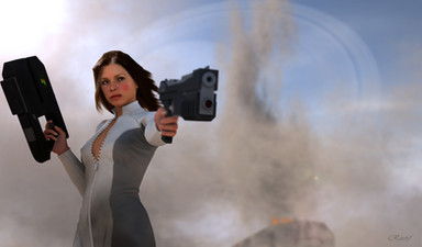 An action scene, just for the pleasure and the technik.Render with Poser 7, postwork with Gimp.