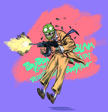 OMG! and the kiddo is holding the grenade, excellent piece, it totally describes in one picture what the movie is about LOL