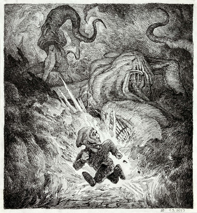 Another illustration i did for a horror novel.Done with a 0.4 micron and a brushpen