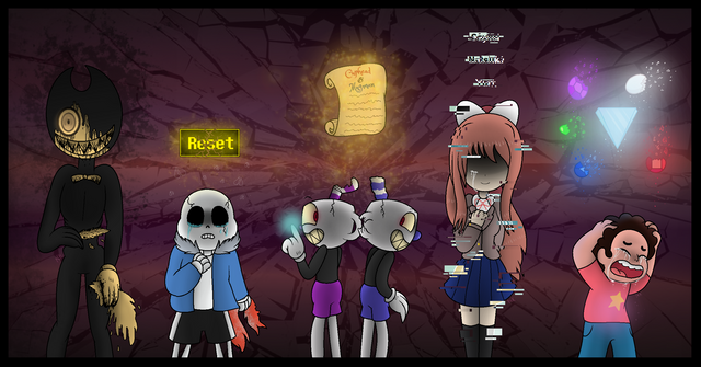 The biggest commission I’ve ever done, all for my good friend Alice, who requested the Undertale characters dressed up as characters from Bendy and the Ink Machine for Halloween. A very fun prompt, and in my opinion, a gorgeous result!