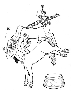 I had Claude take a quiz on what mythical creature he would be, and he got centaur! It seemed fitting, especially for a circus clown, so I figured I'd draw it!Related content