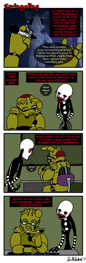 I really liked the first few panels. The angry, distressed and sad expressions on Ennard are nicely done. I think this would be Ennards exact reaction if Eggs were to escape him.Β