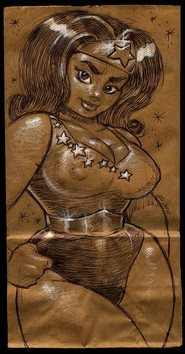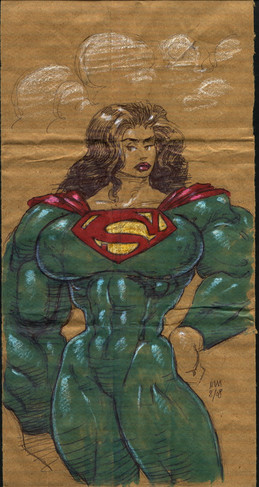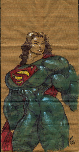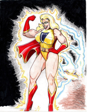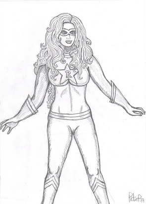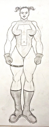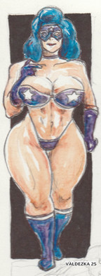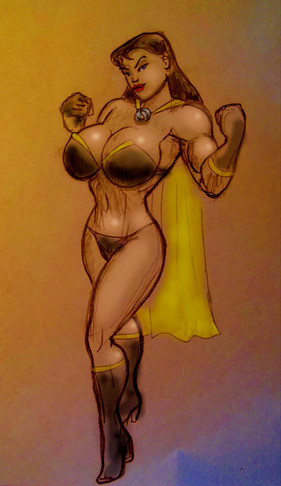I believe Red Guardian first appeared in the Avengers back in the 60’s. Kind of a Russian answer to Captain America during the Cold War era , he eventually was replaced by a female character wearing the same costume. I first saw her in the pages of the Defenders. Then artist Sal Buscema , contrary to his usual style , drew her with an enormous chest. If I ever meet him , and if he remembers at all , I’ll ask him about that. I have chosen to draw her with an enormous EVERYTHING , and I like her this way quite a bit.