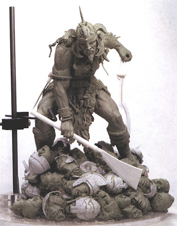 This is a sculpt of a character from a much anticipated video game coming out this October called Brutal Legend. 'Eddie Riggs'. A rock-n-roll roady, guitar playing, axe swinging, demon killing hero played by Jack Black.This was commissioned by Electronic Arts as a promotional give away. There will be 1000 of these produced.