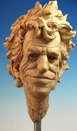 This was sculpted mostly in Super Sculpey. The guitar was built out of Styrene plastic. I even mixed in some real chicken bones strewn throughout the base.