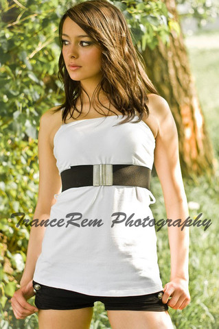 Le modèle est très beau avec une pose gracieuse, le cadrage est pas mal du tout (même si j'aurais cadré plus serré peut-être) par contre c'est bien dommage que la profondeur de champs soit si grande, l'arrière plan est distrayant à mon avis. Mais peut-être que ton objectif n'ouvre pas plus...