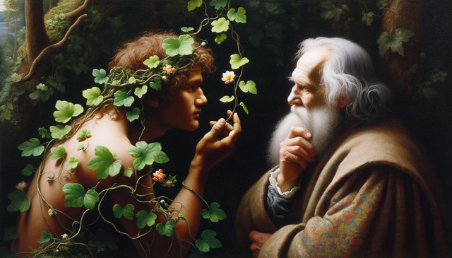 A soft man of strong passions, he thinks not of money or of the concrete. When he is alone with his music, he is a flower. He blossoms within himself, becoming a muscle-less ball of emotion. He travels to his lover to hold her hand, gently kissing her.