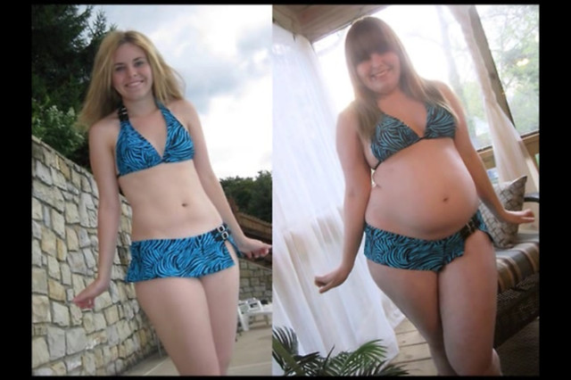 Wouldn't her clothing be ripping by the third picture? And why doesn't her face/arms/hands/chest change at all?