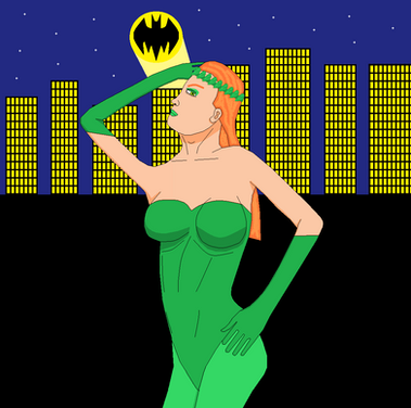 very cool. the red hair on the blue wall is awsome. i also like the fall, so the leaves on the ground also get me on this one.