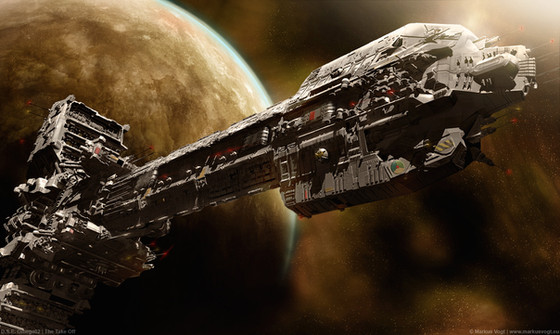 IΒ΄ve used a combination of different meshes for the ship, rendered in Vue and postprocessed in Photoshop.