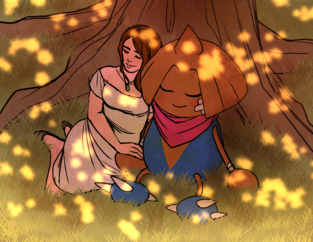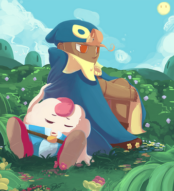 Hatterene looking at Victor like she checks to see if he really is asleep so she can kiss him without him seeing her doing it.