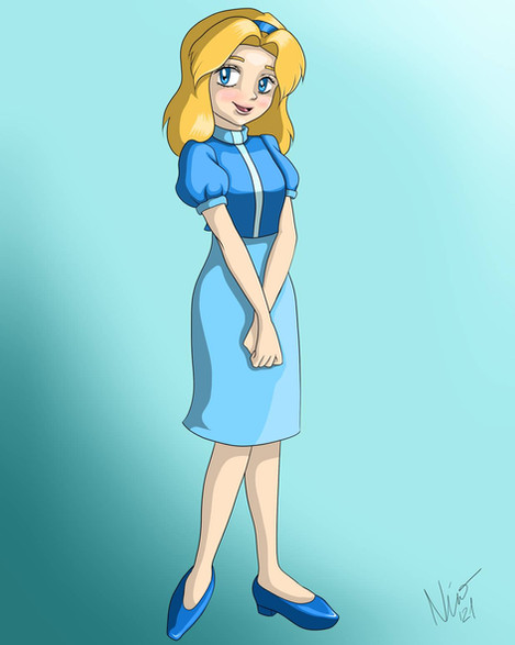 Oh, she's really cute here! I like how she blends so well with - but not into - the background, if that makes any sense. You've picked the colours very well, I think! ^^