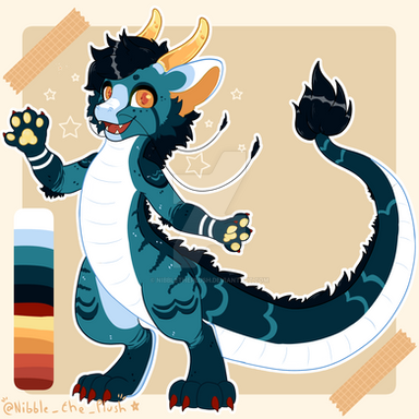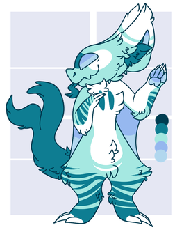 Traits: 5'5, Thin structure, Short fur, 4 stripes on face, 3 stripes everywhere else (where shown on reference)
