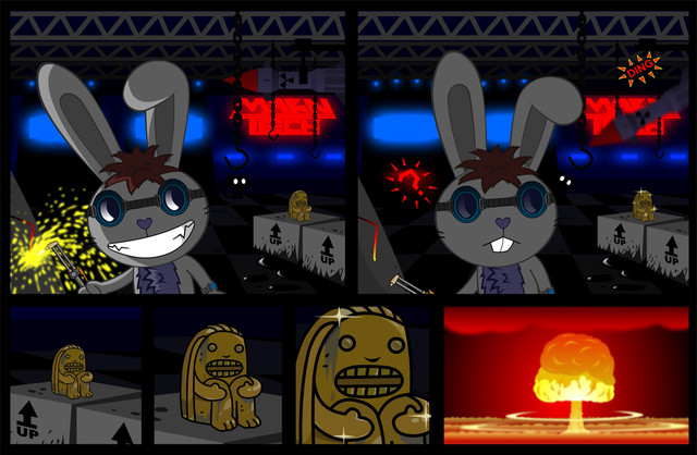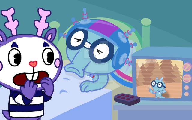 And another picture which was drawn for tournament.In here Sniffles invited Marny for helping him to test his "new" teleport but aparently it got stuck in the middle of the process...