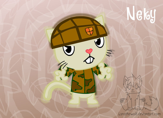 Buckteeth are a must... Though... Wait xD I think, I drew an HTF cat once, which doesn't show buckteeth either