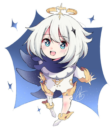 En FB pedí sugerencias de personajes para dibujar y me dijeron a Paimon xdVeo a mi hermano jugarlo pero aún no lo juego yo