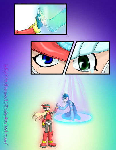 It's interesting you see Zero concerned, when I was doing this pic I wasn't sure about the expressions so I try to give them no expressions at all. The scene was more about giving the responsibility to take care of the world, so I can see why Zero would be surprised or concerned about the situation.