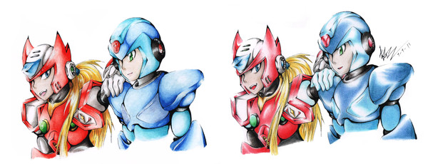 GUH! I love how X and Zero are two totally different color schemes, like how you used warm tones to shade Zero and cool tones on X.