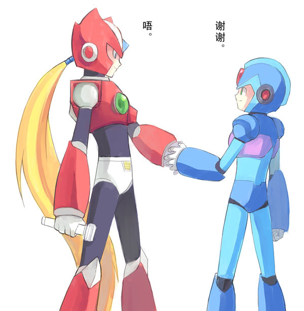 Zero looks surprised or concerned - perhaps X is helping get his memories back?