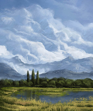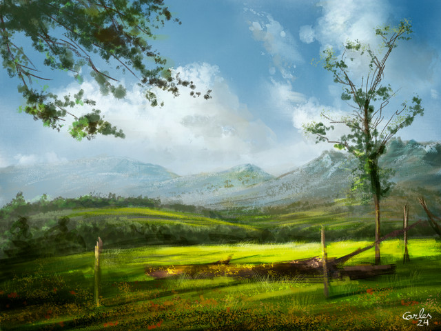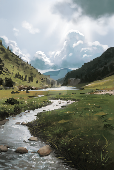 #digital #illustration #season #serene #spring #art #clouds #colorful #digitalpainting #landscape #lush #meadow #photoshop #photoshoppainting #scenery #stylized #tranquility #artworkdigital