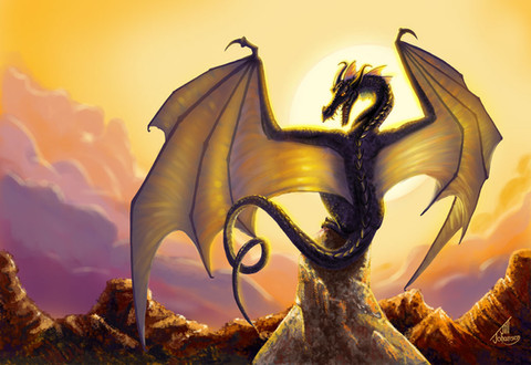 Dawno temu zaczęty, teraz ukończony. Parę razy zmieniałem koncepcję. Zacząłem w PS, dalej 90% malowania cyfrowymi farbami w ArtRage i finał ponownie w PS (ech, gdyby nie te skrzydła...).Nigdy nie widziałem zachodu słońca za gorami, niby jest pełno zdjęć, ale... pięknych widokow najlepiej doświadczać osobiście.