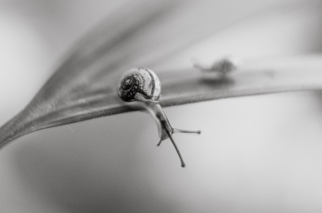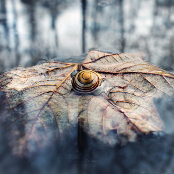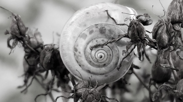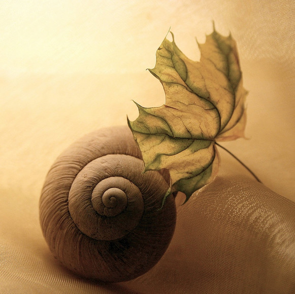 What a lovely shot. The composition is great! I love the curved petal/leaf and the swirled snail shell.