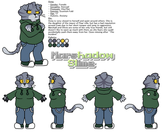This is my new OC desing and I wanted to make a reference sheet for quite some time now.Btw if you want to make of Marshall, make sure to credit me in the description of your post. But PLEASE don't do weird shit with her (aka fetish or NSFW) if you do it I'll kindly alsk you to take it down