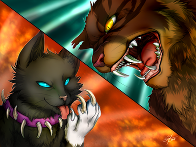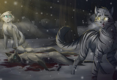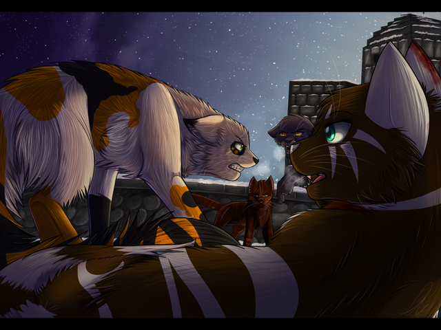 This scene is from "The Fourth Apprentice", Breezepelt follows and threatens to kill Poppyfrost, and Jayfeather tries to stop him.tools: Paint tool SAI