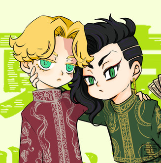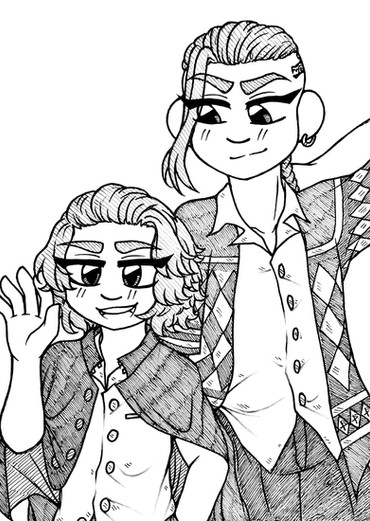 He's a character from the anime Demon Slayer! I'd definitely recommend checking it out sometime, I think you'd probably like it since you tend to like darker stuff. It's got some really fun and charming characters too as well as some good comedic moments, so it's a great balance between that and the darker themes and gore and stuff.