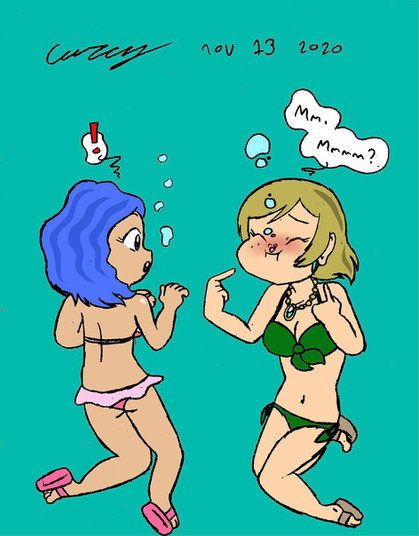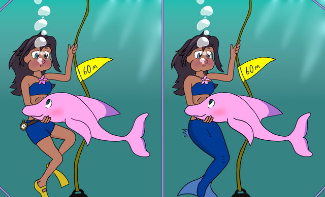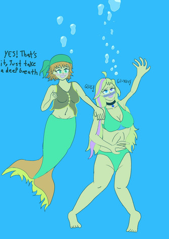 This is a course teaching mermaids how to recognize and rescue drowning humans. Of course, the teacher needed a visual aid for the lecture so she ‘borrowed’ a human from the surface.Don’t worry about her though. She’ll be perfectly safe... provided the class was paying attention.