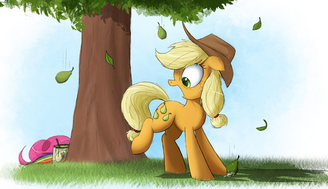 Eh, seeing Applejack on a tree branch upside-down makes me think of Spiderman. Anyways, you did a good job !