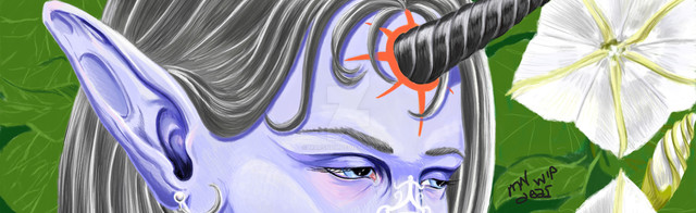 This piece has had a title since it began as a small sketch you can find in my sketchbook gallery (uhm, soonish ha), but I'm not prepared to divulge until it's really and truly finished.I always seem to have more in-progress than I can keep up with, but these will all definitely be finished in time. I just move slowly. This piece has definitely taught me a lot but as always, in order to execute the idea properly, I must always step back from a canvas and give the image time to settle and to finish working its way out to me, as well as rework any errors I might spot with a fresh eye.