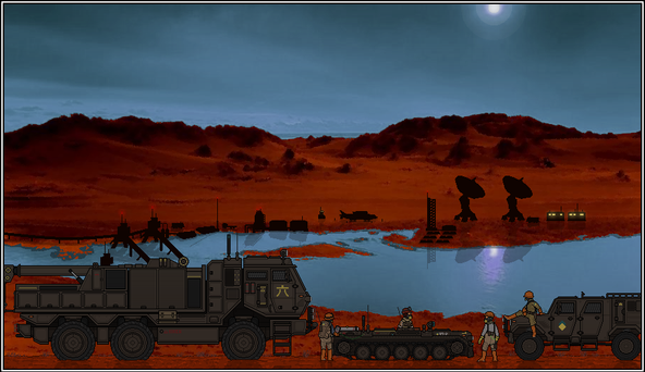The sky is ablaze with the fire of an alien sun. Nothing quite compares to the unique feeling of landing on a different world, one far removed from the homeworld under a distant star. Utterly different and yet the same is the soil beneath the boots of the 143th, as Condors fly overhead, delivering the deadly might of the Earth Alliance.Note: I haven't done much work on landscapes and planetside scenes before, so I am just getting to grips with some new brushes and techniques. This came out quite alright for now, but I'll definetly try to work on some improvements later on. Until then, enjoy some GROPOS designs on the move!
