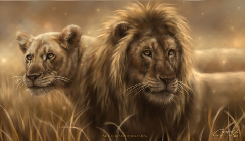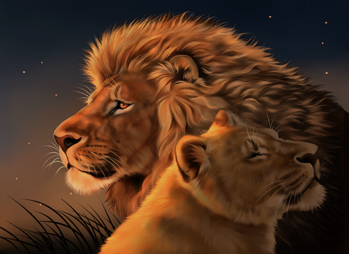 aaa dziękuję bardzo xD ten obrazek to tak trochę przerobiony, bo sam rysun "sklejony" z dwóch niezależnych refek, dla uzyskania tato-córkowego efektu XD ale duży lew rzuca się w oczy faktycznie