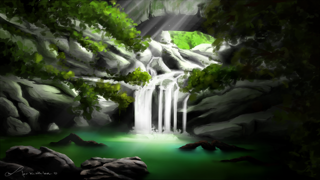 Very pretty and calming. I love the lightning and the general atmosphere of the drawing. And considering what the rough draft looked like, I'd say you did a fantastic job! You RossDraws that sucker. Made something beautiful and amazing out of something else entirely. But for what it's worth the rough draft does look like a very interesting abstract piece with a pleasant color pallet.