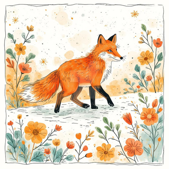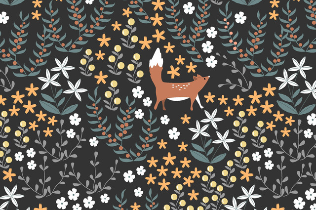 The texture you gave the foxes gives everything depth. The shapes are lovely, and work perfectly together, as well as your choice of color palette. You have the right amount of flowers per fox ratio.