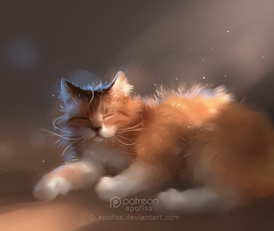 Nice piece! You seem to have a good understanding of the light, like the artwork Lucy . You gave enough details to make the muzzle realistic. The fur is not very detailed, but that's what I like in this piece. The white spots and the black space in the right of the artwork contrast with the sunlights and give a peaceful atmosphere to this beautiful artwork.