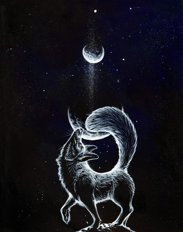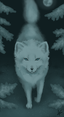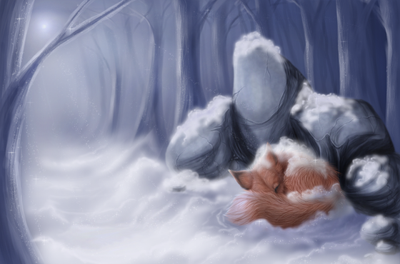 #book #clouds #cover #dark #forest #fox #illustration #moon #night #niu #snow #sword #wanderer