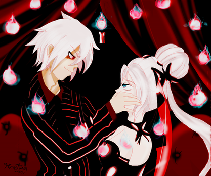 I have no idea why I added the eyes beneath them...which pupils fairly reflect the colors of the eyes of both (Soul's a little brighter not-so-red-but-light-purple in madness mood <- OMG today i dunno how to express myself...XD).