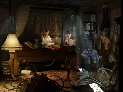 For a seven year old it had been quite a shocking surprise being able to read characters out of books. And to explain to adults that Pinocchio was not an imaginary friend but a real, well..., person living in her bedroom. It took her some effort to find out how to send him back, especially since being "hid" in the fireplace was her first idea but not an option in the end. But it taught her not to tell anybody about her gift.Mr Inky was well read (he hated the pun), but always cheered her up and she decided to keep Shelob until the rat problem in the cellar was solved. The nameless Zombie (obviously a coward) only could be read out of his story when the fridge was well filled and she was very unsure what to make of the wherewolf, who always asked her to wear red lingerie. But all in all she enjoyed having them around in the darker autumn days and she was very happy for them to answer the door when the neighbourhood's children came round for Halloween.
