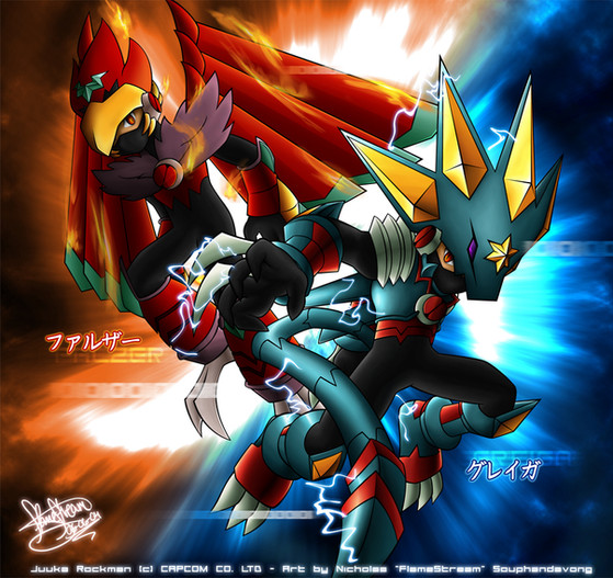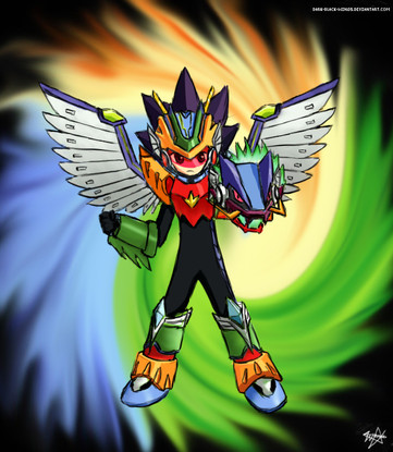 lol nice; Althought you got Forte's colors wrong. The wings are red. like in Rockman's beast-out. If you want proof. Just reply to me and I'll show you the image of the original Beast out Forte chip for the Link PET in japan.