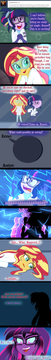 Twilight sparkle, Sunset Shimmer, Rarity, Pinkie pie, Applejack, Rainbow Dash, Starlight Glimmer, Sci-twi, Fluttershy confronts lockdown.