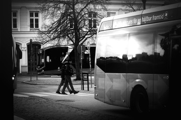 So many stories going on, and that's just the bus passing overhead. Characters going by and hanging about, cars passing and then there's the beauty of the last hours of sunlight. Much is extra in the details, sadly many will be lost in the small reproduction and the shadows.