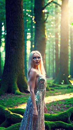 C0BALT-BLU3 - Beautiful blonde girl in a blue dress in the woods [🤖]
