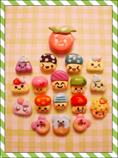Oh they're all so cute and bursting with perosnality... I can't decide which is my favourite! I love the purple's frilled 'skirt', the yellow's pose and ribbon, the pink's exasperated expression, the blue's adorable cuteness, and the green's extreme "OOOHHHH!"ness. XD