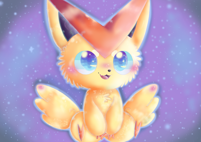 Victini was.. A little difficult. I had a really hard time drawing this one without making it fall somewhere on the creepy side of things. It took some tweaking, but I'm happy with how it turned out in the end.