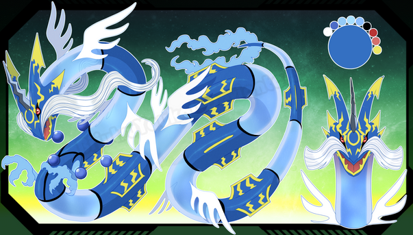 based on Eastern Dragon which said to be a divine beast with the ability to control rain/water (hence the additional typing), while the given "Waterfall" move was taken from the legend of how a carp fish who successfully leaps over a waterfall will ascend as a dragon~ uwu