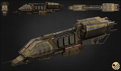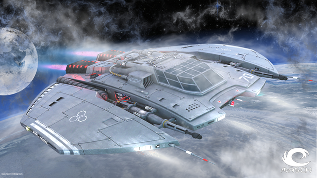 kleiner Schlachtkreuzer, hier in der Zivilen Version.28 meter lang , 2 Mann Besatzung ,überlichtschnell.