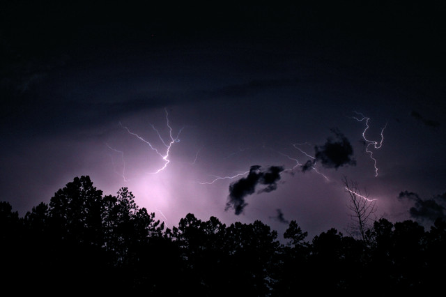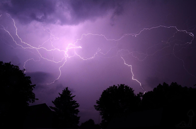 Had a pretty strong storm roll through the area tonight. Figured it was a great time to break out the camera and test my luck at getting some lightning. I haven't had much luck capturing lightning for various reasons, mainly due to the fact that there is so much stuff around its often difficult to actually see the sky. Oh yea, and the fact that I'm not trying to get struck by lightning. Incidentally about 3 minutes after this shot was taken, lightning struck just down the street and we rushed inside.Although this was a long exposure, all these actual bolts occured within a second of each other, was kind of crazy.