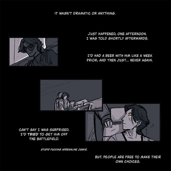 Matt's upset panel only shows the top half of his body, I bet he just dropped a mirror.